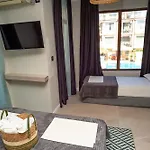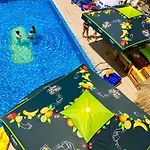 Salena Beach Hotelの一部の部屋にはパティオ と薄型テレビが備わっています。